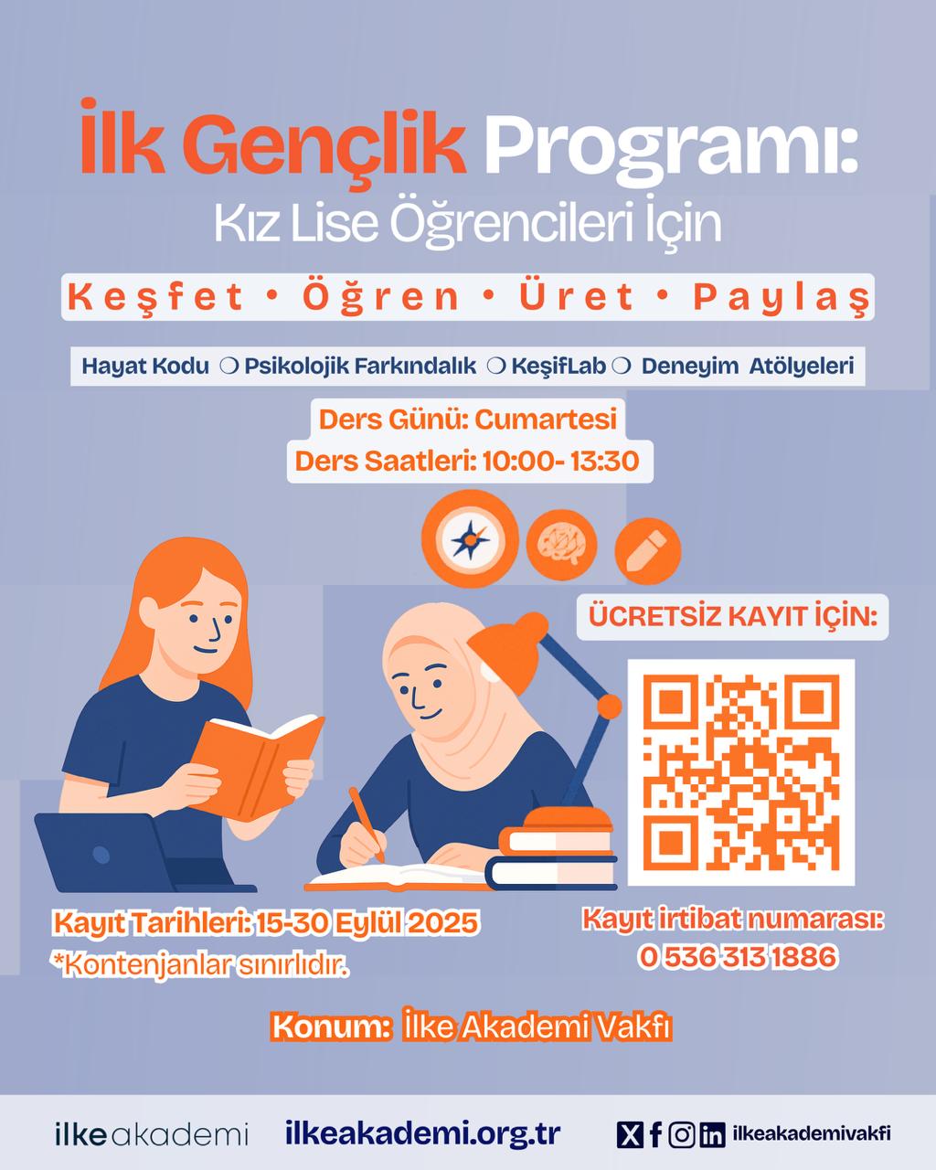 İlke Akademi Eğitim ve Kültür Vakfı’nın lise öğrencilerine yönelik İlk Gençlik Programı, 2025–2026 eğitim dönemi için gençlerle birlikte yeni yolculuğuna başlıyor.